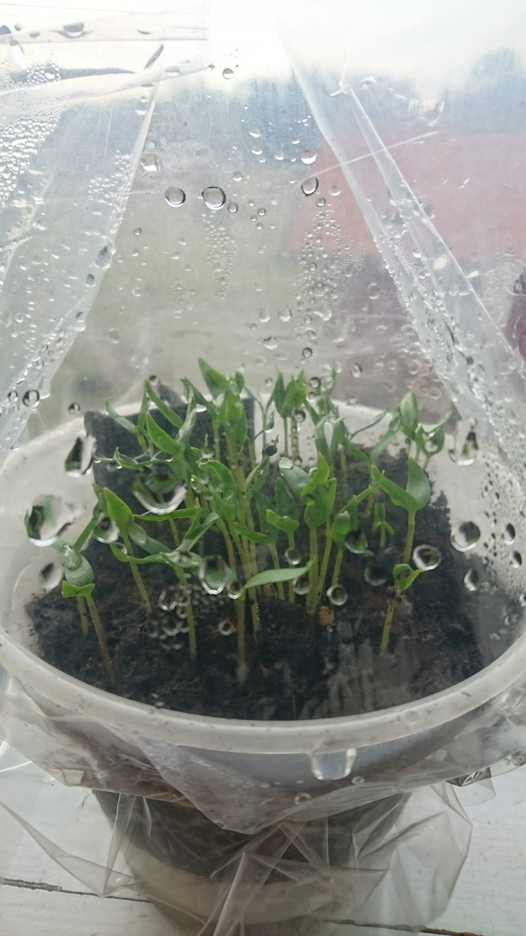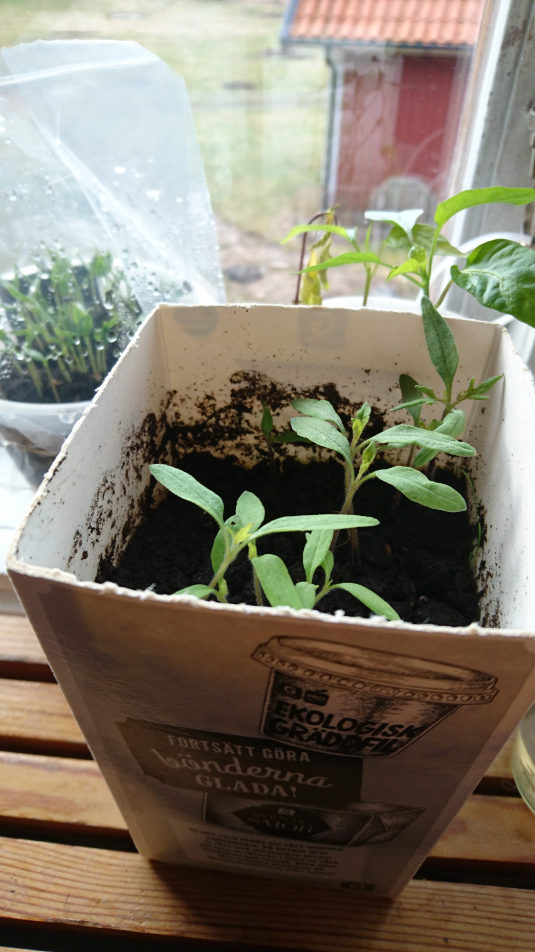 …här, små paprikorna,  fick komma ut till landet nu, andra omgången sådda frön,  den första frös ihjäl när nån öppnade fönstret i kylan.  ???