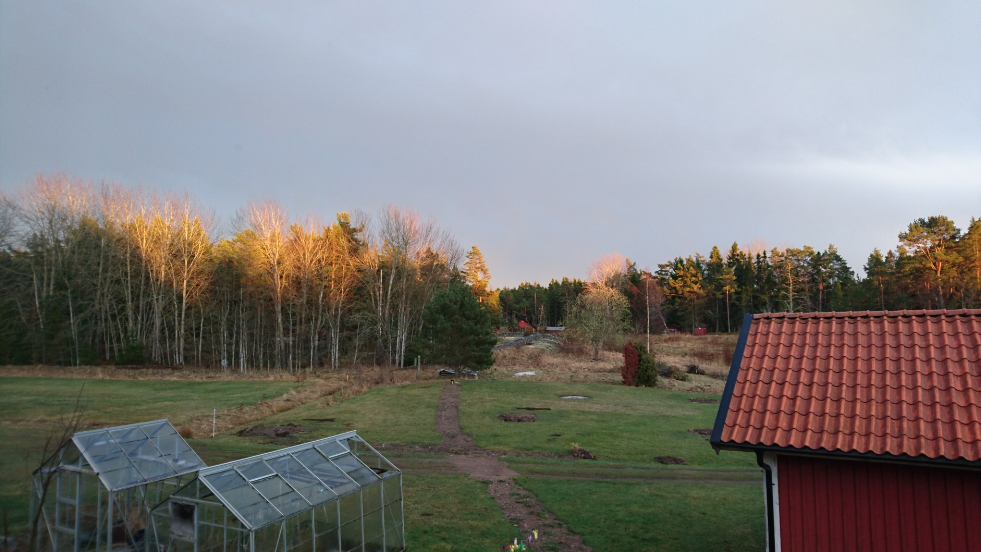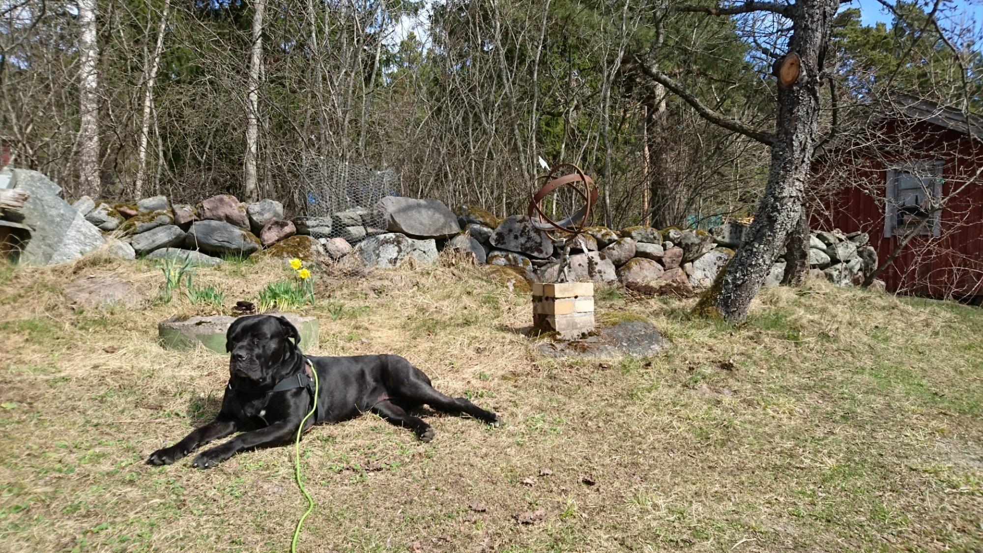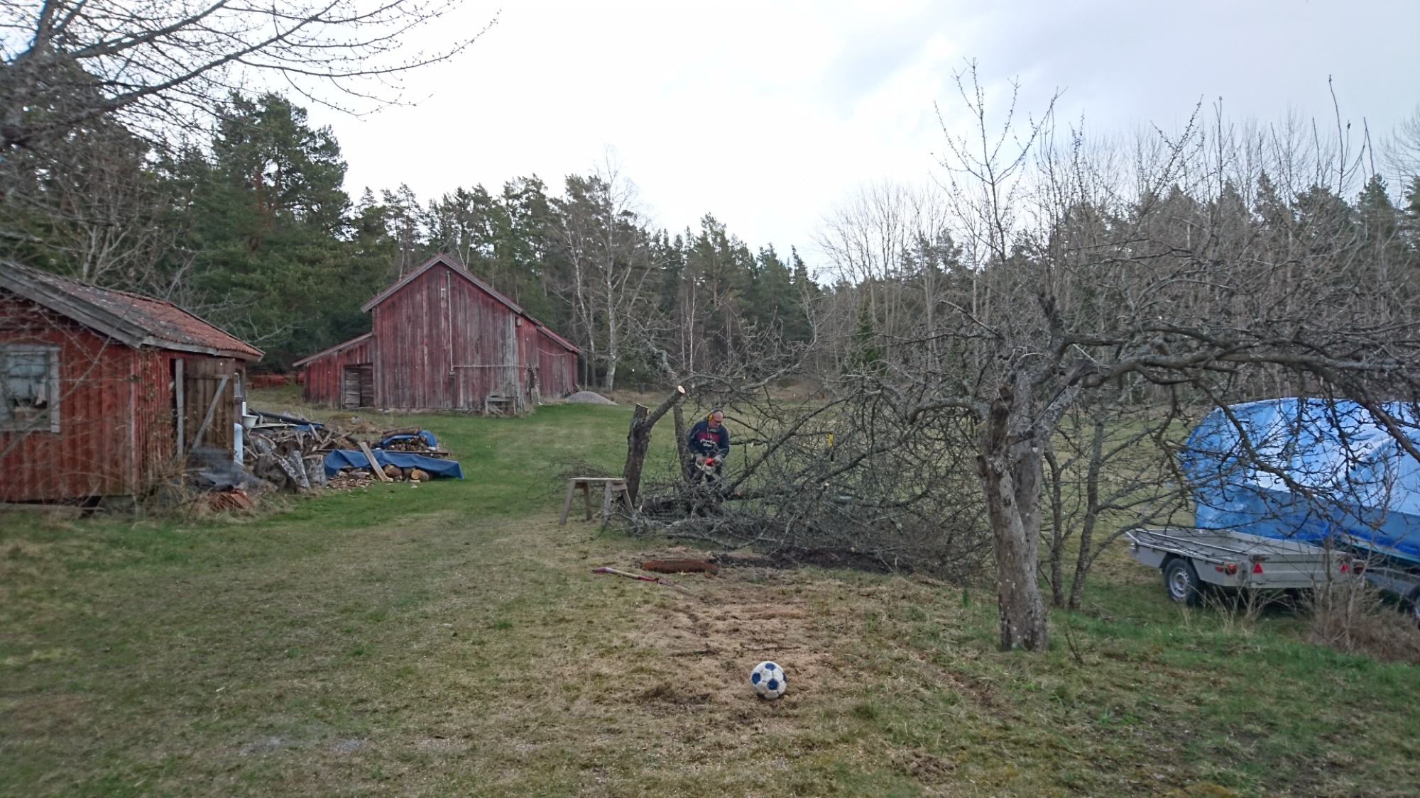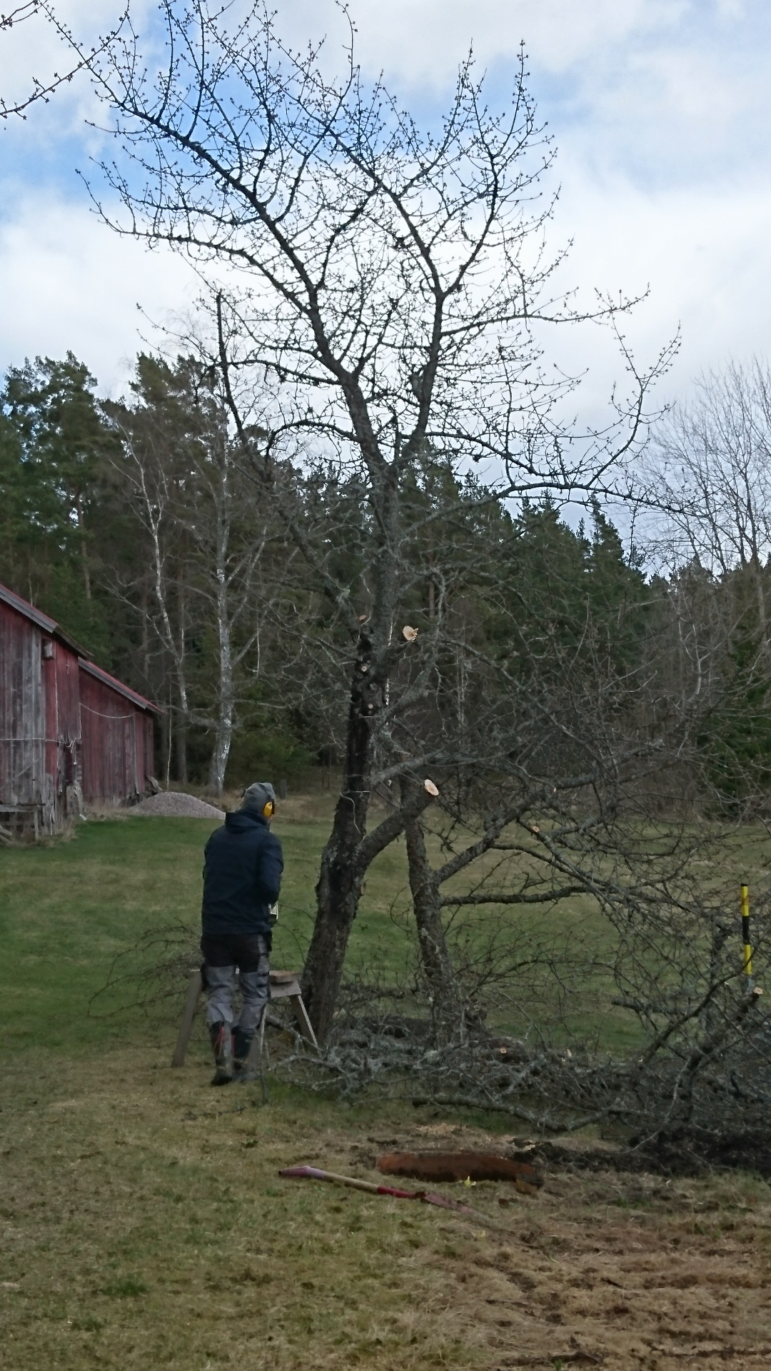 Älsklingen har gett sig på körsbärsträdet som tar morgonsolen, ska bli skönt med fika i morgonsolen, och spännande att se hur det blir sen. ??
