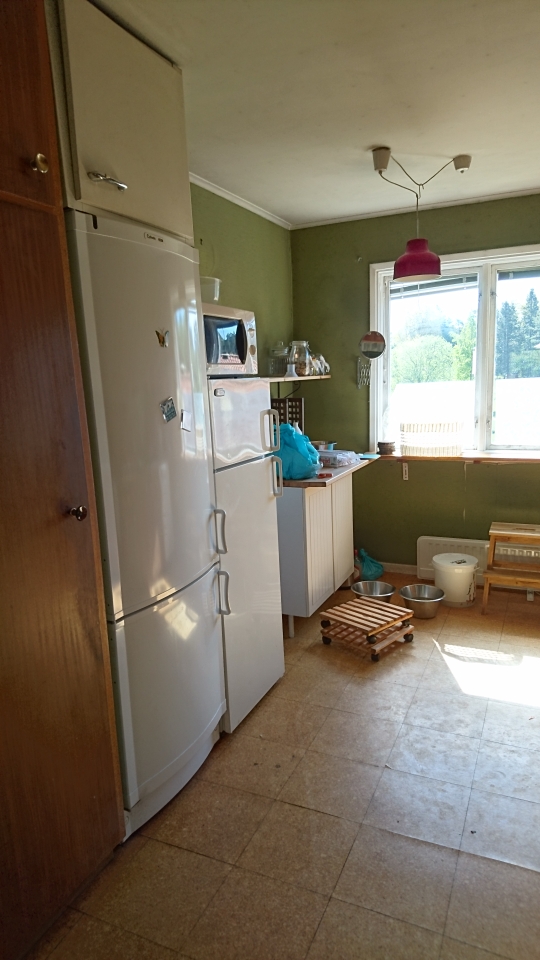 Flyttade om litet i kök o hall. Lilla kylen från Lillstugan är nu öl/vin/grönsakskyl . ? Skönt med litet mer utrymme. ??