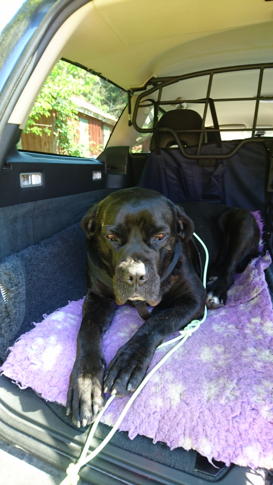 Hon trodde nog att jag skulle klippa gräset, och eftersom hon är rädd för gräsklipparen, så var det säkrast att stanna kvar i tryggheten i bilen.. ????