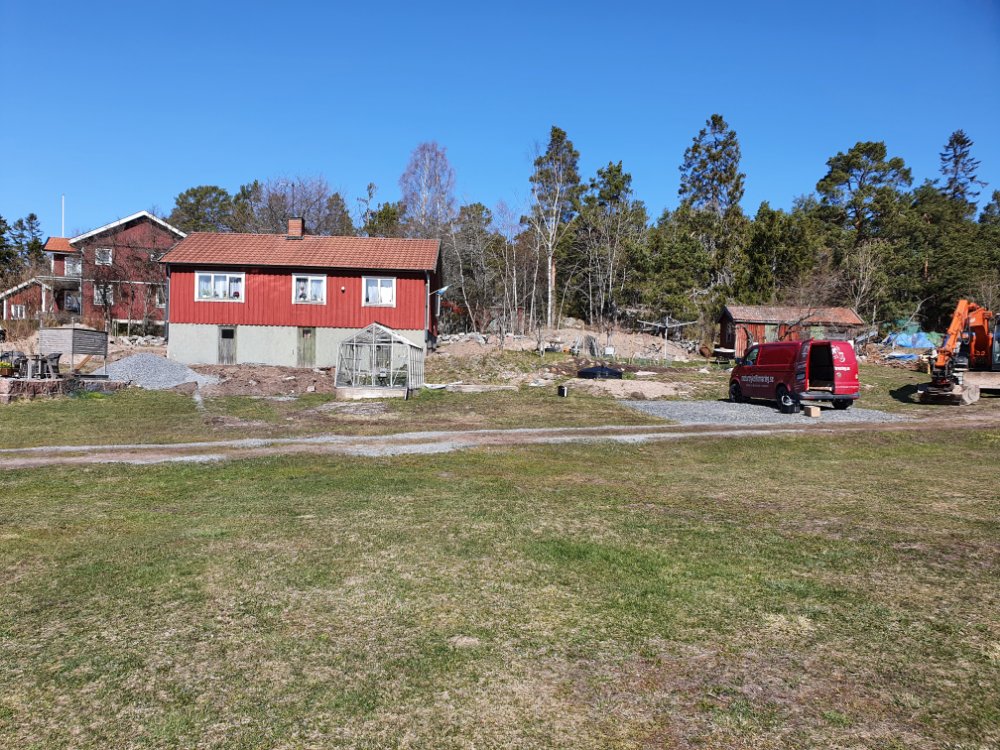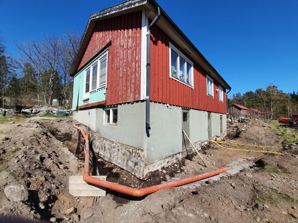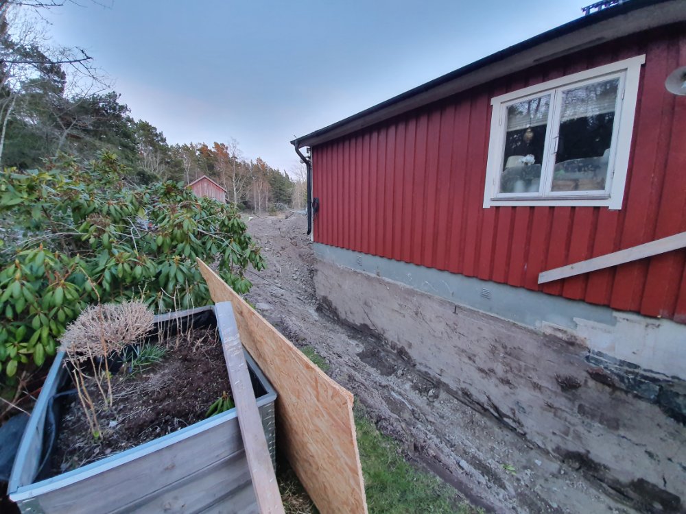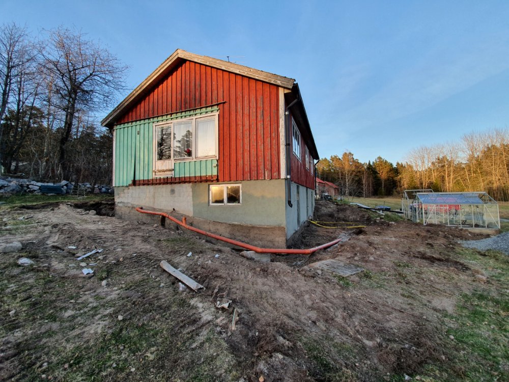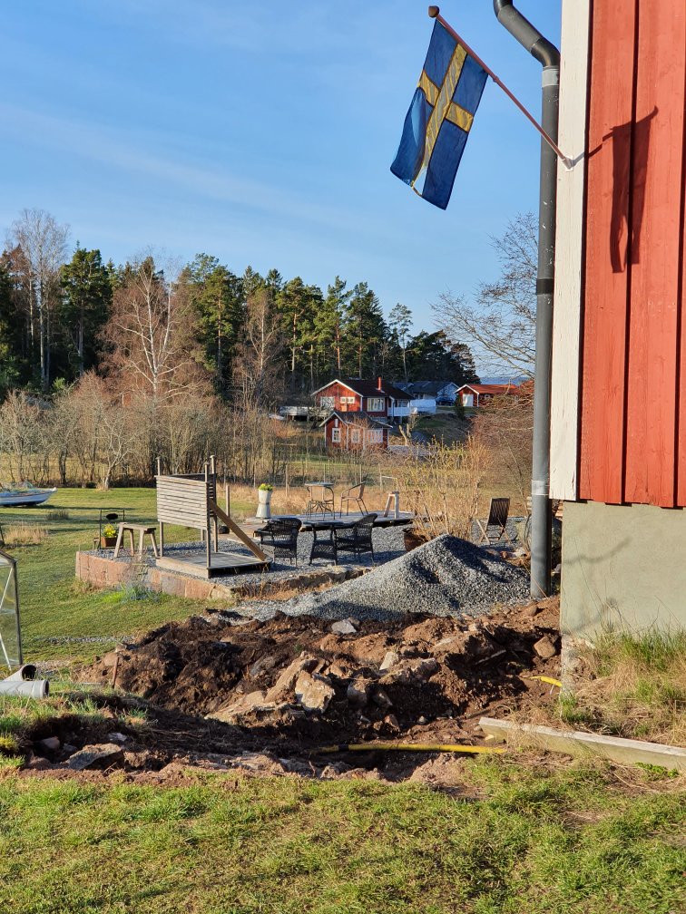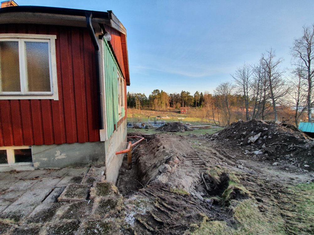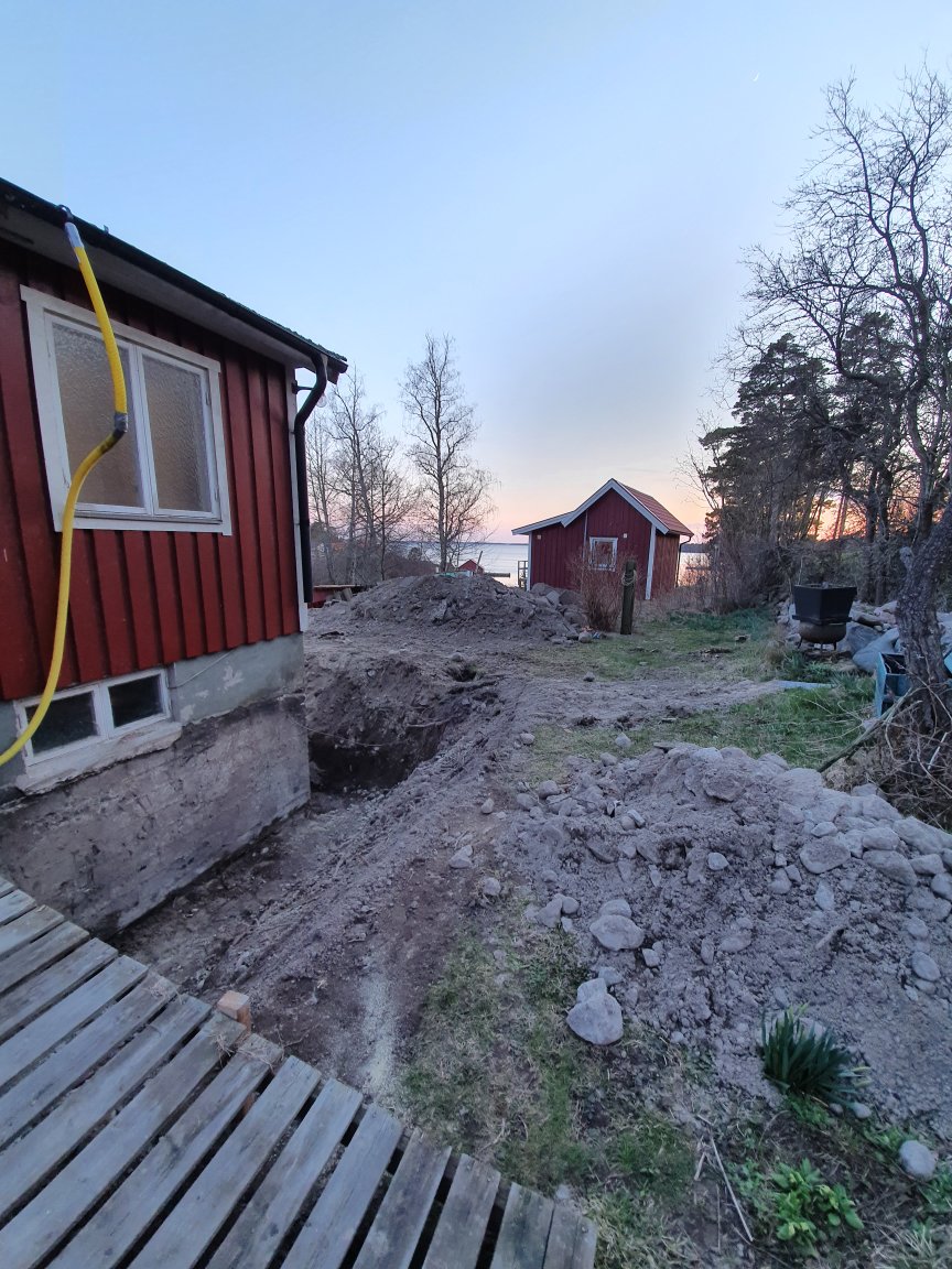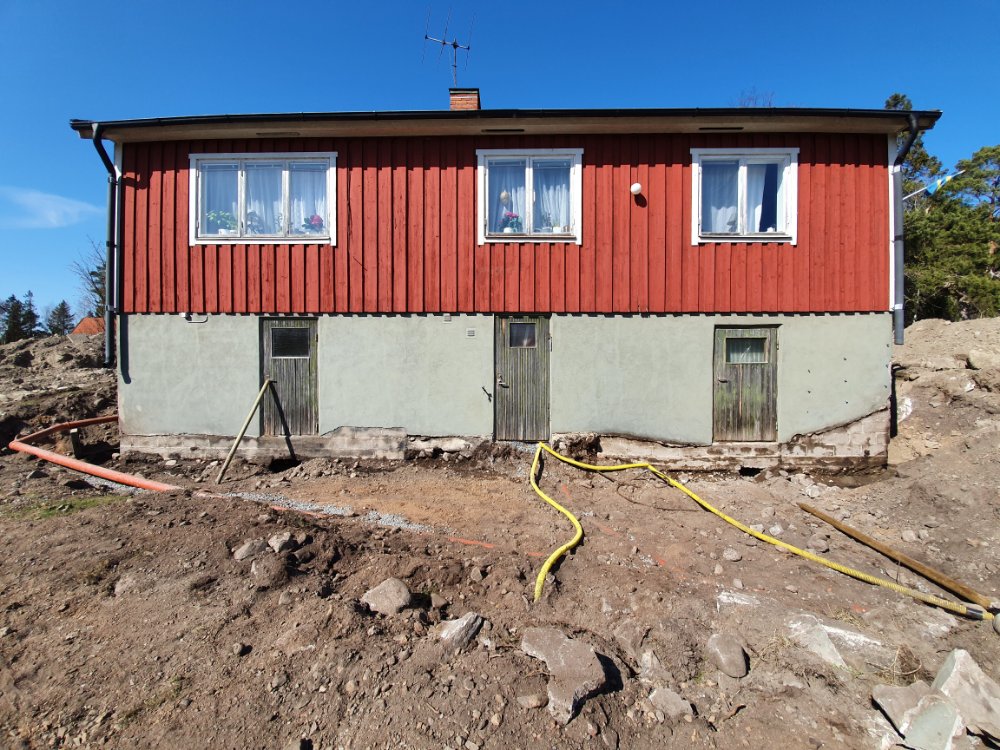 I eftermiddag kommer de o börjar blästra grunden, och efter helgen lägger de igen ”vallgraven”. Ska bli jätteskönt, att ”bara” sakna Baltanen o farstukvisten, och inte känna att man behöva riskera livet varje gång man går in och ut… 🙄🤗