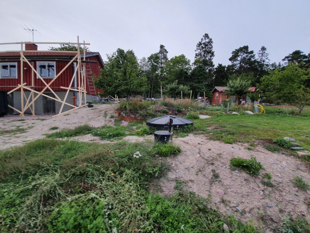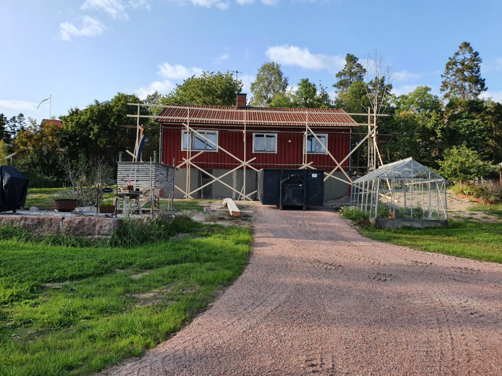 Vi har iaf rensat runt huset, på långsidorna, och snickarna har varit här o satt upp ställningarna, så det är iaf redo för att börja jobbas på. 🤗👍