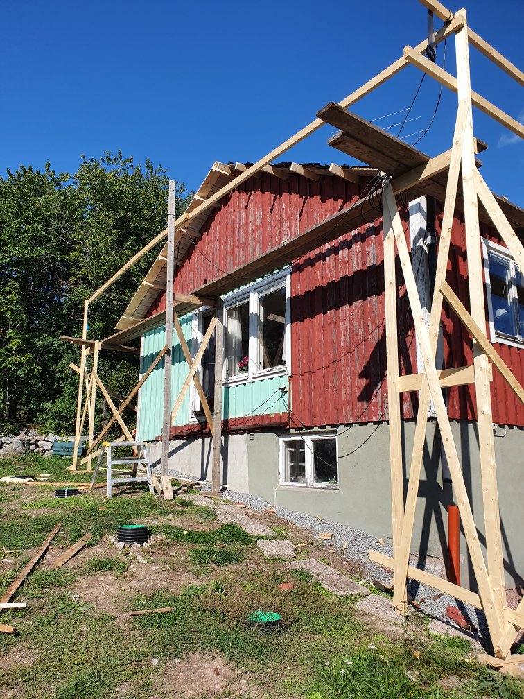 …väder, o vips så finns det en förlängd takfot på plats, på bakre/ingångssidan. 🥰