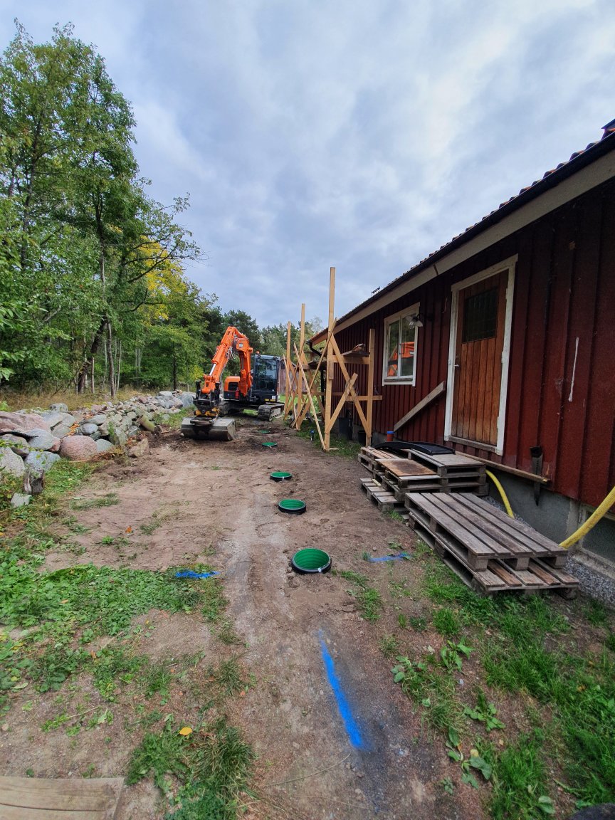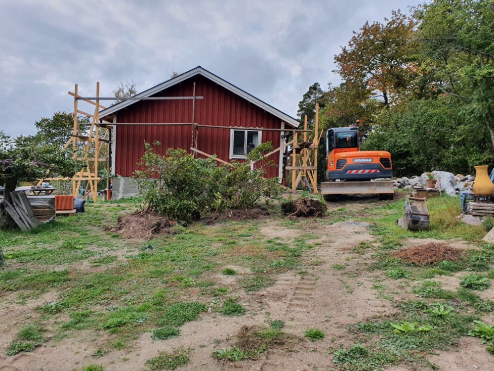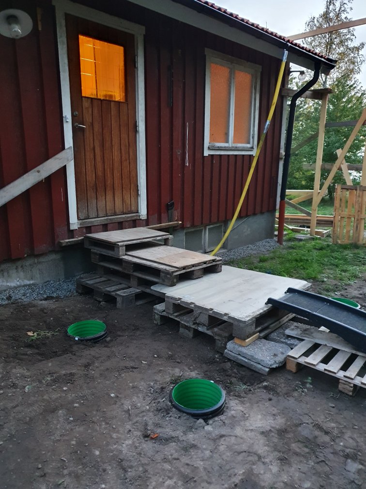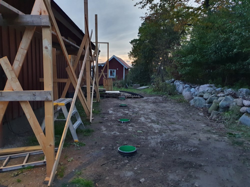 …plintar grävs ner, för farstukvisten och den delen av altanen som är på den sidan.