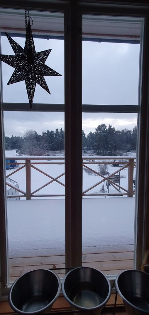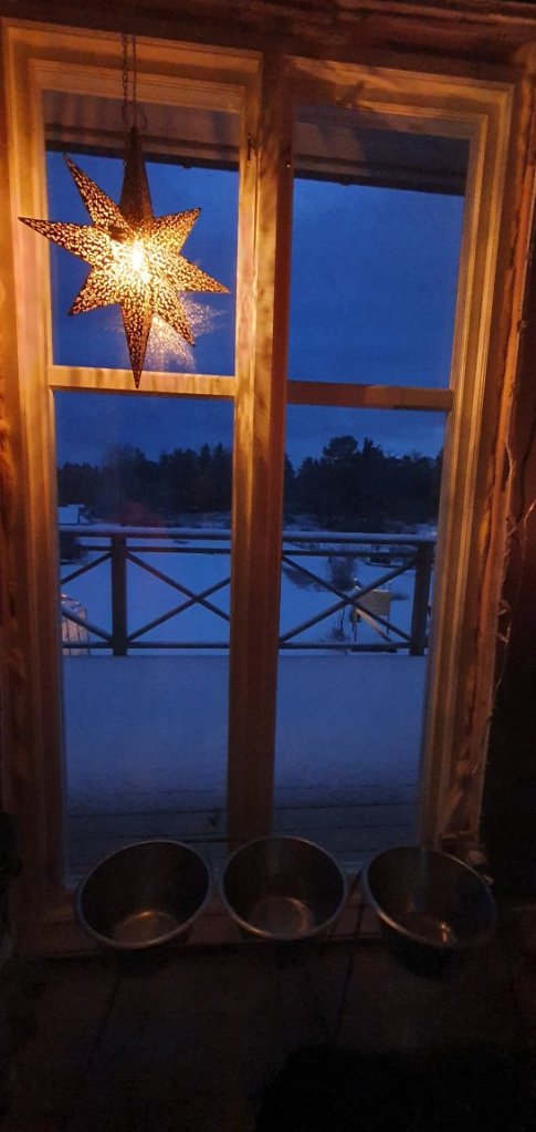 …grader I köket (varmaste rummet) när jag kom ut vid 13.30-tiden i fredags.. efter att ha eldat nån timme var det 9 grader, så det ökade ganska snabbt. 🤗👍😁