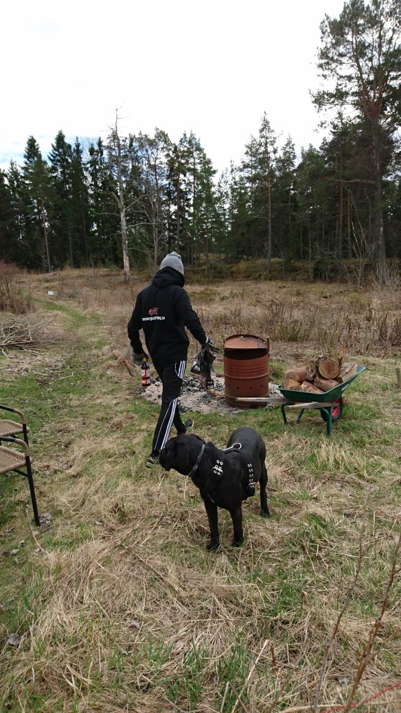 Förberedelser för brasan, det blåste endel, så vi tog det säkra före det osäkra, blev tunnan som Danne gjort i ordning till oss. ??