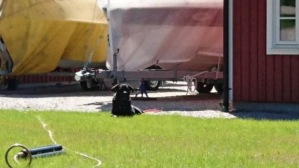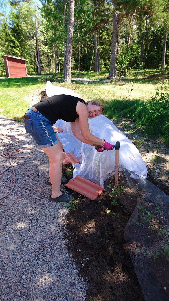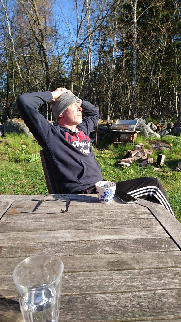 En stunds skön vila efter rensning av jordgubbsbåten. ?