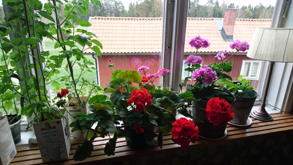 Pelargoner o tomater trivs i fönstren i vardagsrummet iaf. ?