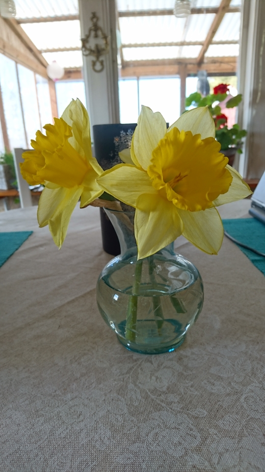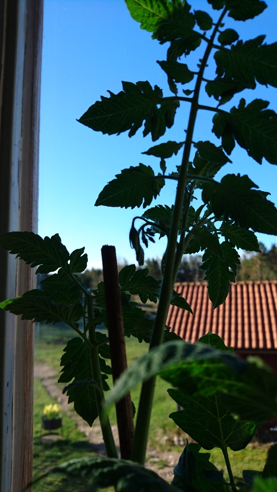 Tomatplantan har börjat blomma, alltid nåt…? fast jag ser att andras plantor kommit längre, kanske borde jag skola om dem en gång innan utplantering, för att få tidigare tomater. ?