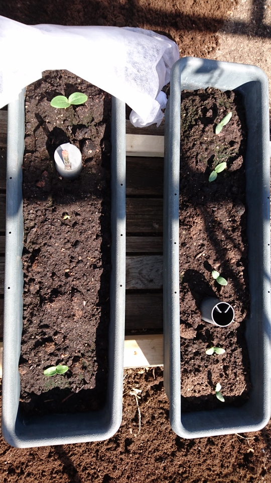 Gurka och zucchini, kommer dock ej ihåg vilken som var vilken, men det lär visa sig. ?