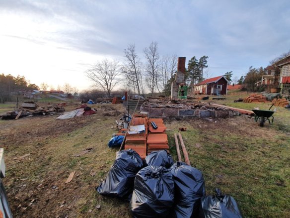 …och att vi blivit av med de två stoooora högarna, en med spån o masonitskivor o sånt, o en med säckar fyllda med ”bös”…😳