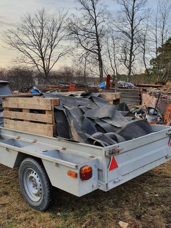 All takpapp fick plats i släpet, småbitarna och en del väggpapp i säckar, imorgon bär det av till ÅVC. 🤗🤗🤗
