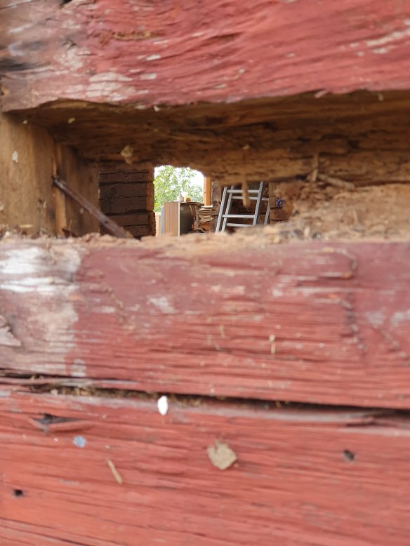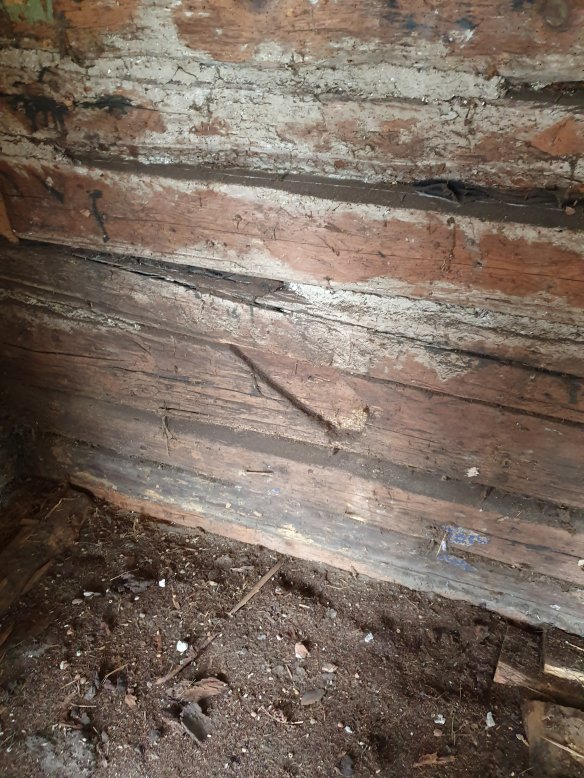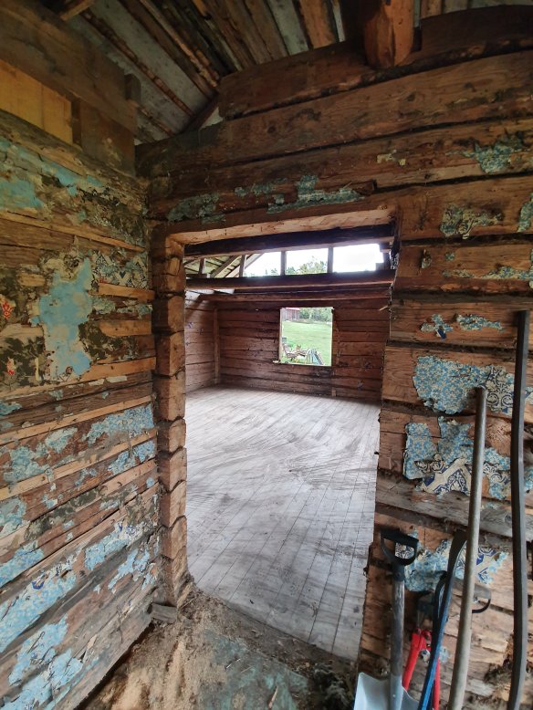 Dörrposter borttagna, och en borttagen vägg visar att det varit en dörr där tidigare. Högra öppningen, in till vänster… närmare på bilden nedan…