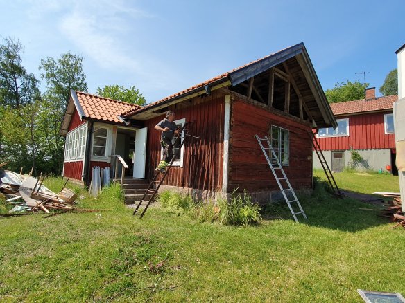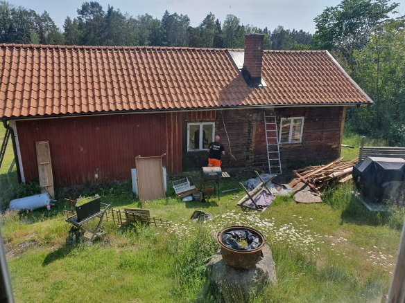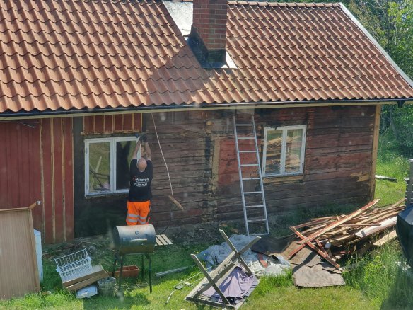 ..halva långsidan har han hunnit med. Mycket jobb är det…?☀️?