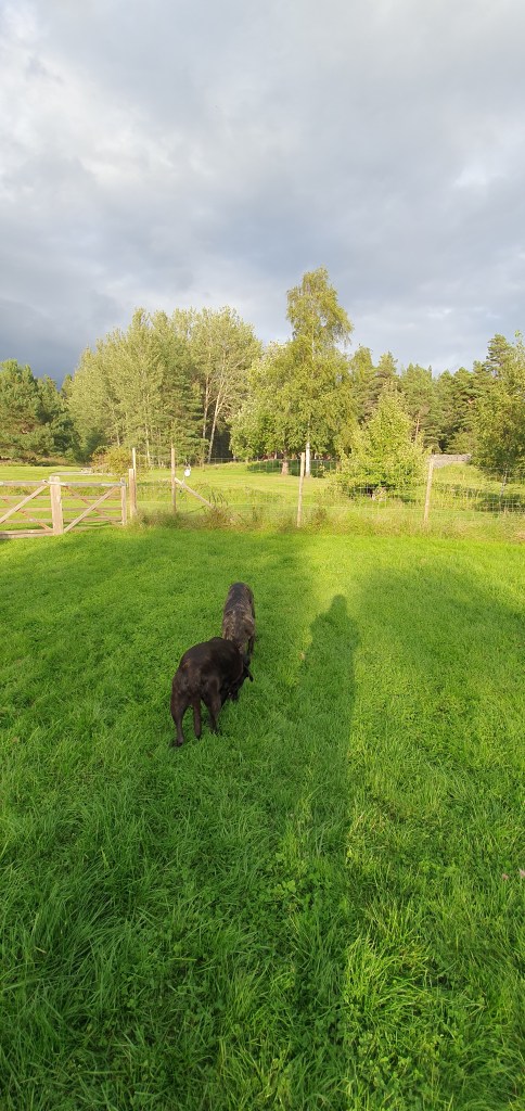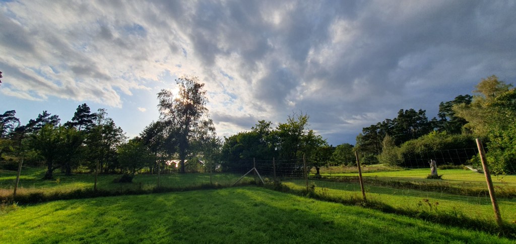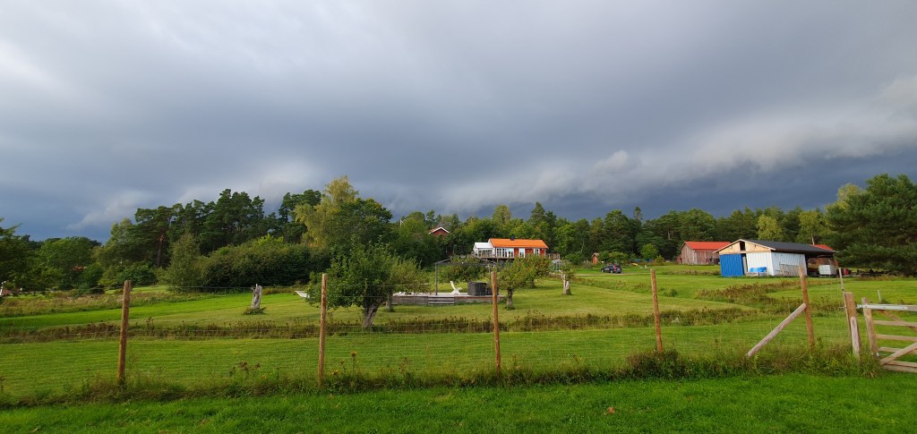 Njöt av solen, men sen drog det ihop sig ordentligt ,på himlen, så vi gick tillbaka till huset. Nu myser vi i uterummet när det regnar litet lätt….🥰⛅️🌧