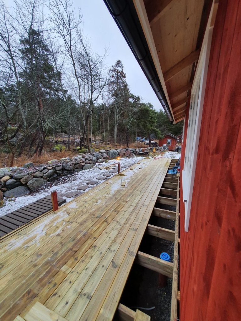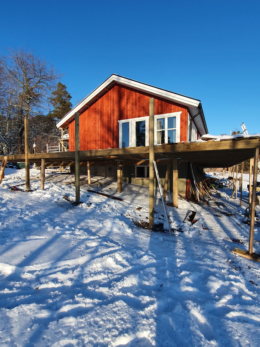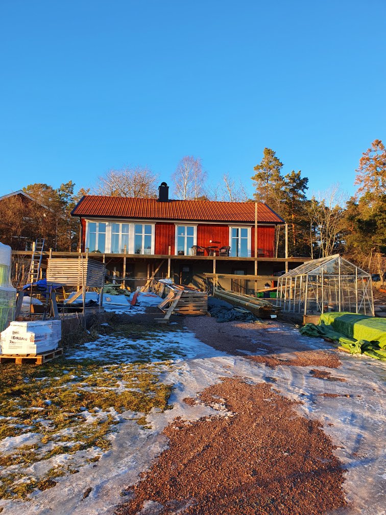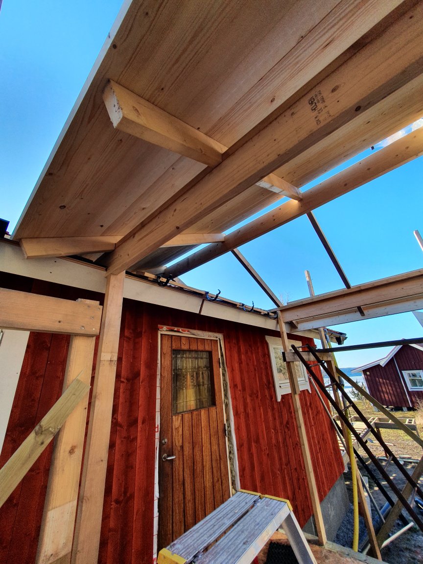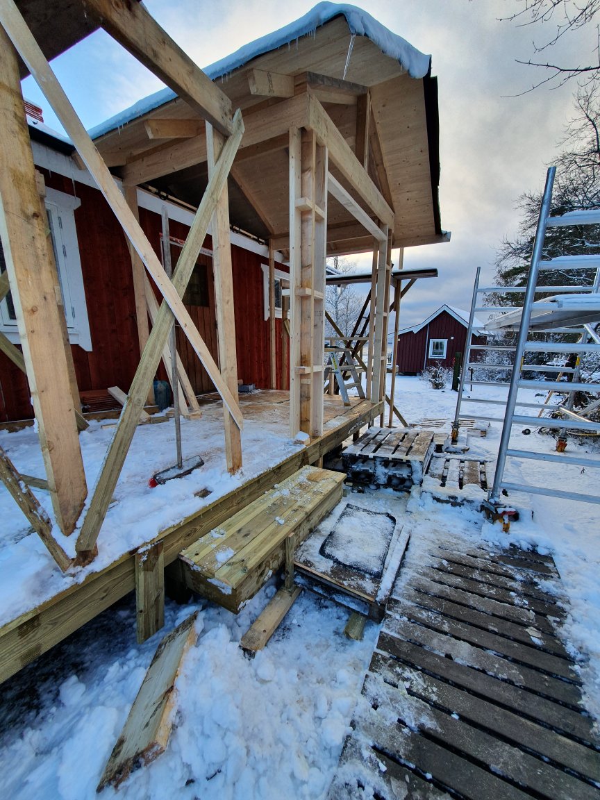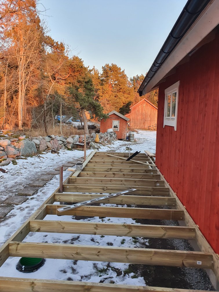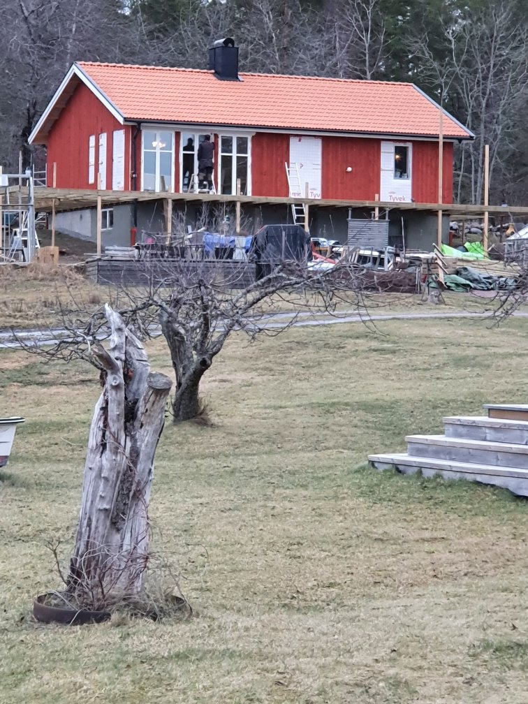 …sjuka snickare så går det inte undan direkt, men nu har vi iaf altan på sydsidan, och nästan klart på MorronfikaAltanen. De har börjat förbereda för farstukvisten oxå. 🤗👍💞