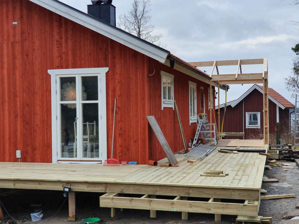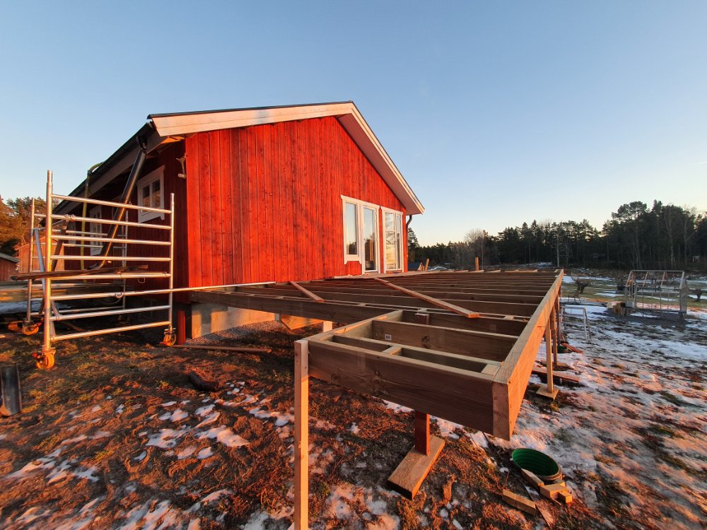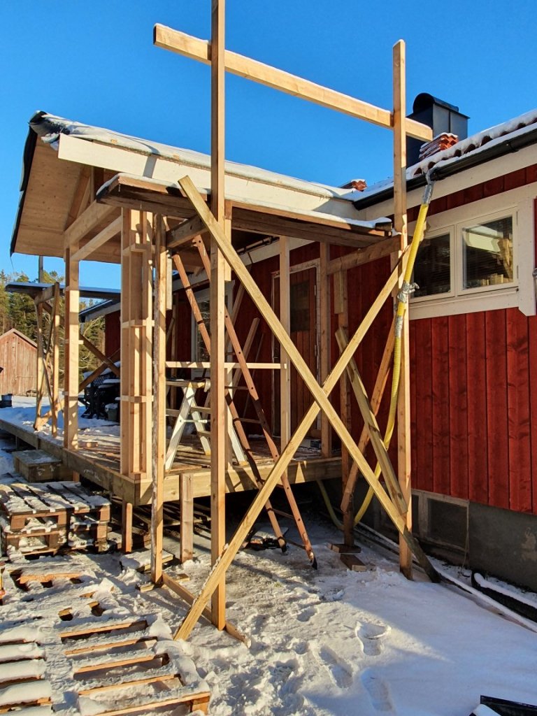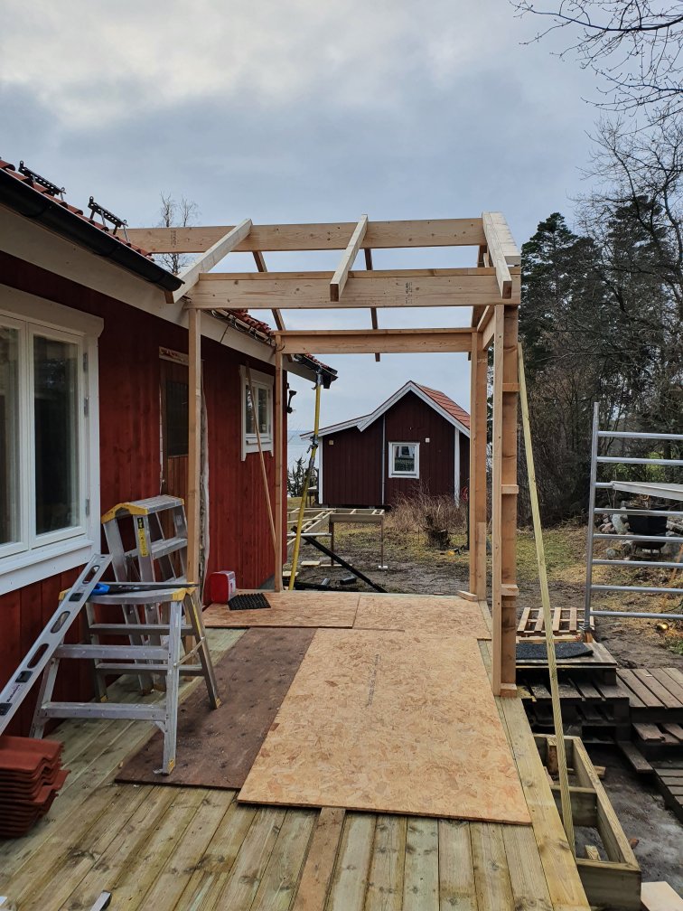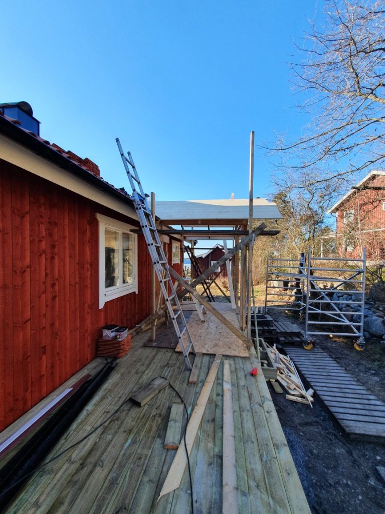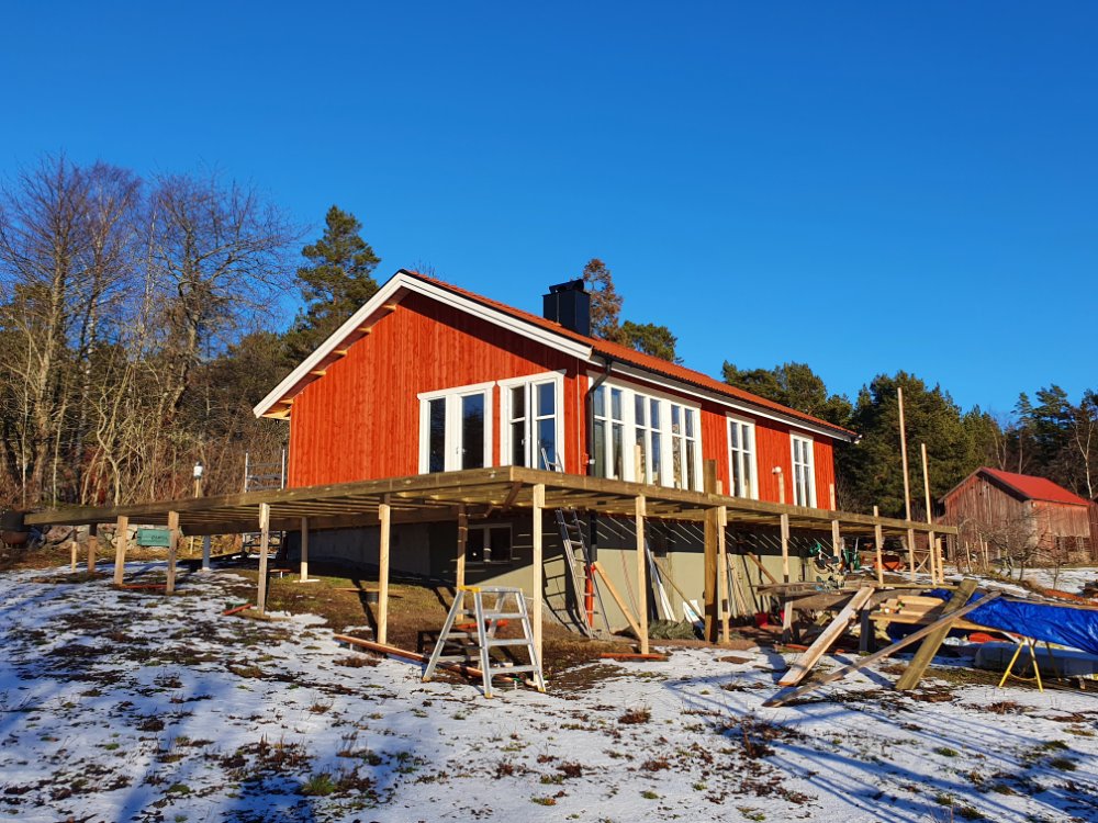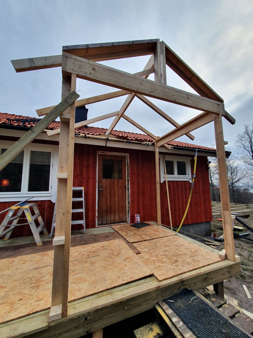 …sjuka snickare så går det inte undan direkt, men nu har vi iaf altan på sydsidan, och nästan klart på MorronfikaAltanen. De har börjat förbereda för farstukvisten oxå. 🤗👍💞