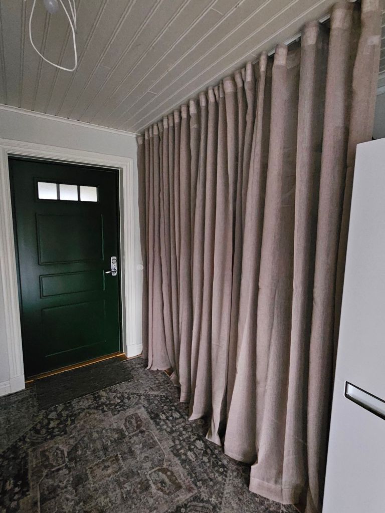 Vi får fila litet på var de ska vara när de inte ska skydda mot sol eller kallras. Men kul att ha fått upp gardinerna. 😍 Tack snälla Ewis för tips o pepp… ❤️