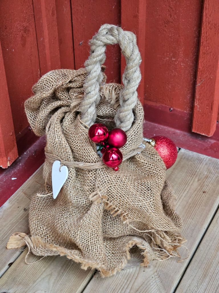 Den här dörrstoppen, som jag fått av syrran 😍, fick litet ”julklädsel” för att inte repa dörren om den skulle försöka blåsa upp…🤪❤️