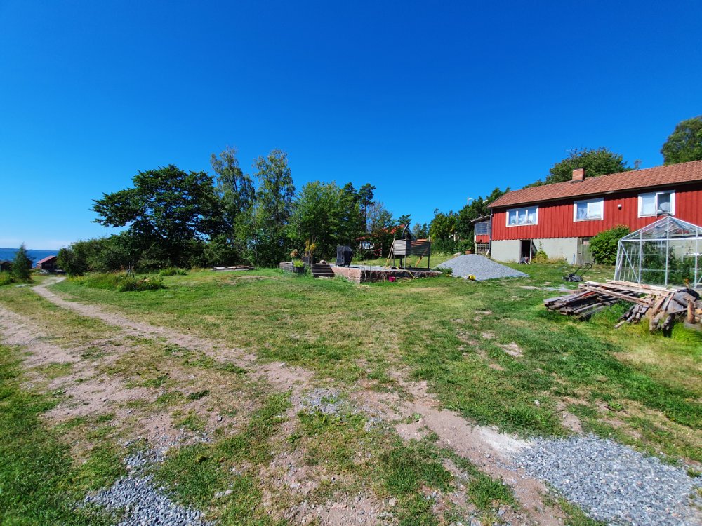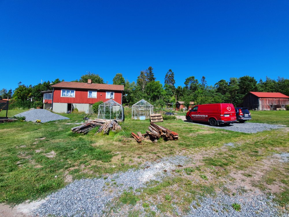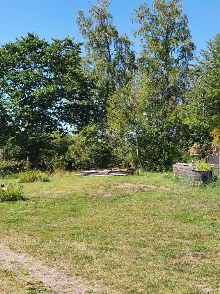 Ett gäng långa brädor kvar, litet småskrot och lilla växthuset, sen så….